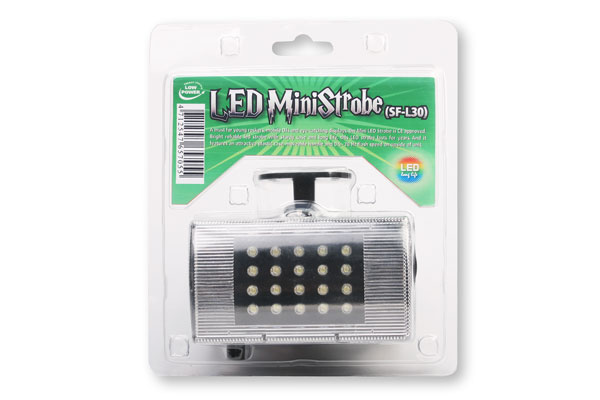 Mini LED Strobe (SF-L30) https://www.jyunyao.com.tw/?p=163 https://www.jyunyao.com.tw/?p=163#respond Mon, 25 Oct 2010 04:00:05 +0000 http://www.jyunyao.com.tw/?p=163 A must for young rockers, mobile DJs and eye-catching displays, the Mini LED Strobe is CE approved. Bright reliable led strobe with sturdy case and long life, these LED strobes lasts for years. And it features an attractive plastic case, moveable handle and 0.5~20 Hz flash speed control on upside of unit.