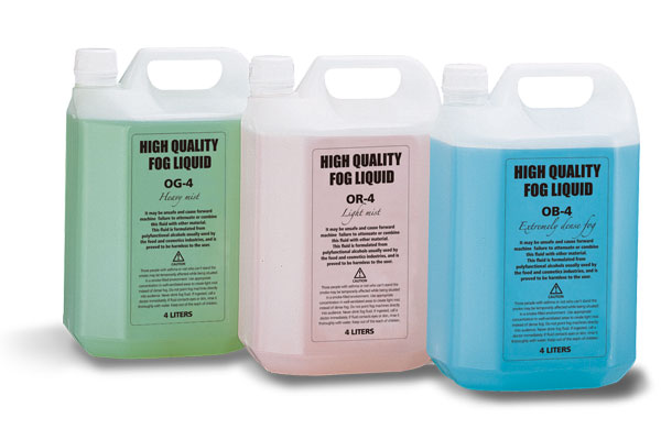 Fog Machine Liquid (OB-4/OG-4/OR-4) https://www.jyunyao.com.tw/?p=48 https://www.jyunyao.com.tw/?p=48#respond Wed, 11 Aug 2010 02:20:00 +0000 http://www.jyunyao.com.tw/?p=48 Our high-quality water-based fog liquid, containing no pernicious materials, produces pure dense fog to match perfectly with stage lighting and music for outstanding performance. Produced under stringent quality control system, our fog liquid is harmless, odorless and leaves no oily residue.