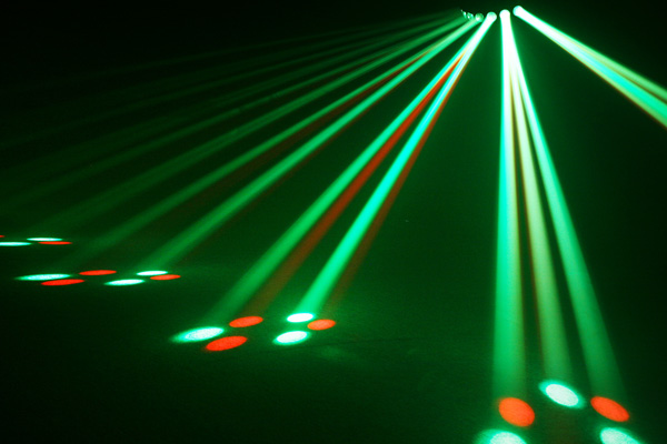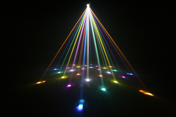 • 108 razor sharp beams fill a dance floor, ceiling or wall.