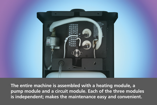 - Sharp Modularization: The entire machine is assembled with a heating module, a pump module and a circuit module. Each of the three modules is independent, and that is what makes the maintenance so direct and easy.