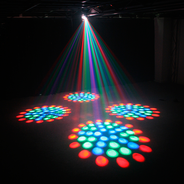 can produce four light beams of high lumen sharply colored in red, blue and green.