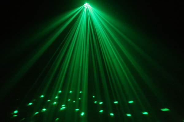 - 108 razor sharp beams fill a dance floor, ceiling or wall.